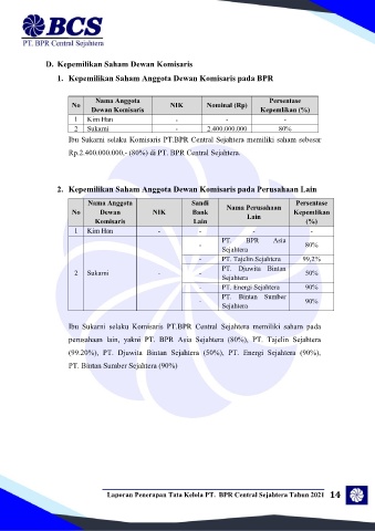 Ibu  Sukarni  selaku  Komisaris  PT.BPR  Central  Sejahtera  memiliki  saham  pada