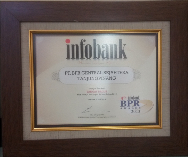 Mendapatkan penghargaan Infobank GOLDEN AWARD dengan kategori Kinerja Keuangan Terbaik berturut-turut 5 tahun dengan predikat Sangat Bagus.