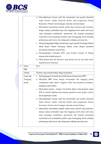 Laporan Penerapan Tata Kelola PT. BPR Central Sejahtera Tahun 2021 9