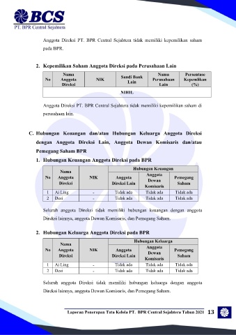 C. Hubungan Keuangan dan/atau Hubungan Keluarga Anggota Direksi