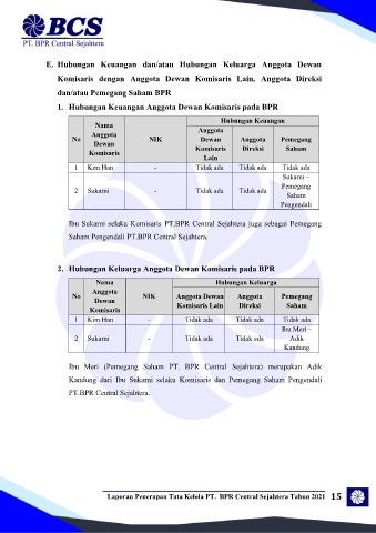 E. Hubungan Keuangan dan/atau Hubungan Keluarga Anggota Dewan
