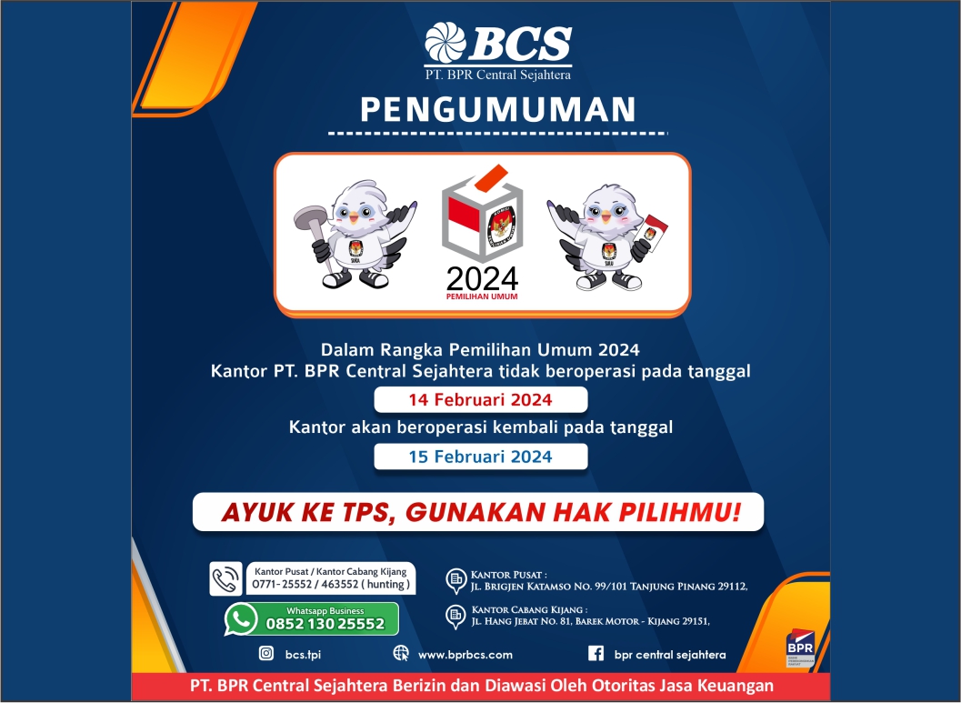 Direksi & Segenap Karyawan/ti PT. BPR CENTRAL SEJAHTERA (BCS)