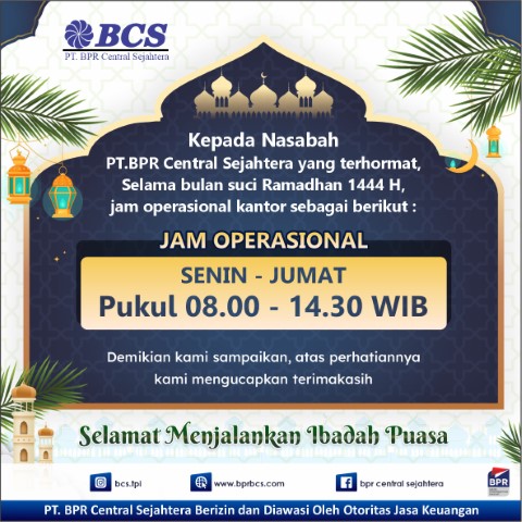 Direksi & Segenap Karyawan/ti PT BPR CENTRAL SEJAHTERA mengucapkan "Selamat Menjalankan Ibadah Puasa"